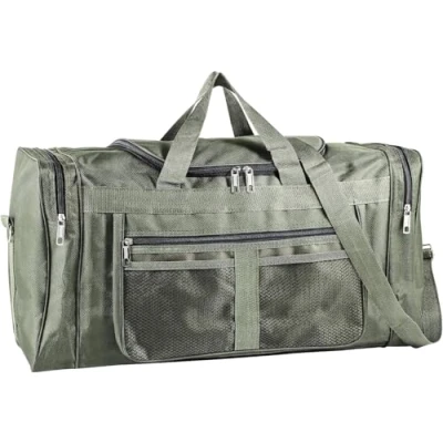 [Spacious 60L Capacity & Organised Compartments]This large sports holdall offers a generous 60L capacity, easily holding gear for a weekend away or a full gym session. It features a main compartment with dual zippers, a front zippered pocket for wet kit or towels, and two side mesh pockets for quick access to water bottles or smaller items, keeping everything organised. [Durable & Water-Resistant Nylon Build]Constructed from high-density, tear-resistant nylon, this duffel bag is built to withstand rigorous use. The water-resistant coating protects your belongings from light rain and spills, making it an ideal fishing holdall or sports bag for all weather conditions. Reinforced stitching ensures long-lasting durability. [Comfortable & Adjustable Carrying Options]Designed for convenience, this bag offers multiple carrying styles. The adjustable, padded shoulder strap allows for comfortable cross-body or shoulder carry, whilst the robust top and side handles provide a secure grip for hand-carrying or short trips. [Ideal for Gym, Travel & Fishing Trips]This versatile holdall is your perfect companion for numerous activities. Its large, open interior is great for gym clothes, its durable fabric suits fishing tackle, and its spacious design makes it an excellent weekend travel bag for men seeking a reliable duffel. [Robust Design with Practical Features]Attention to detail defines this bag. It features heavy-duty, smooth-gliding zippers that won't snag, a sturdy base to keep the bag upright when packed, and a sleek design in classic Army Green or Black that works for both sports and casual travel.