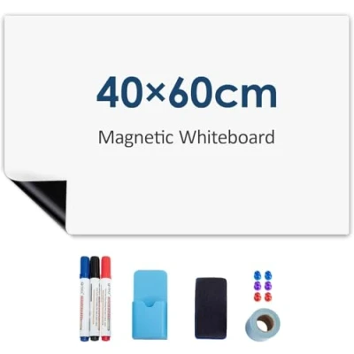 BREEZENEST Magnetic Whiteboard Sheet Premium PET Dry Erase Board with Strong Backing Choose Your Size for Fridge, Office, Kitchen Organisation Includes Markers & Eraser (60 x 40 cm)