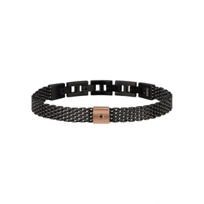 Breil Men's Bracelet Black Diamond Collection TJ2955 Jewellery Steel Mesh with Natural and Rose 22 cm