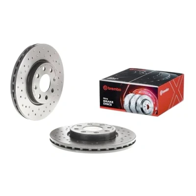 The box contains two discs. Drilled brake disc: better wet performance, greater heat dissipation and pad cleaning Maximum performance together with Brembo Xtra Pads. With UV coating; With fixing screw Diameter: 257 mm; Thickness: 22 mm; Thickness minimum: 20.5 mm OE equivalent; ECE R-90 approved