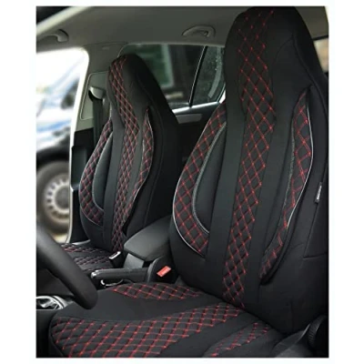 Our seat covers are exactly matched to your chosen car model Made to measure compatible with your vehicle driver and passenger in black/red stitching Suitable for airbags and seat heating For a better and comfortable seating experience, the flanks are additionally strongly lined Made to measure for Bremer seat covers