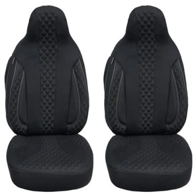Features: made to measure for driver and passenger, also suitable for active headrests (not removable headrests), made in Germany Material: high-quality car fabric with 8 mm foam lining Extras: 3 layer system, seat covers suitable for airbags and seat heating, back of the front seats equipped with generous pockets, comfortable and sporty seat Assembly: 1. Pull the cover on the seat. 2. Clip/hook attached under the seat. 3. Attach the backrest covers with Velcro fastener Box contents: 1 x single seat cover (2 pieces) for drivers, 1 x single seat cover (2 pieces) for passenger, bracket/hook, assembly instructions (English language not guaranteed)