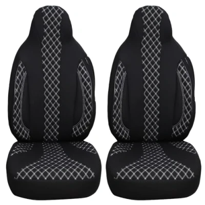 Features: made to measure for driver and passenger, also suitable for active headrests (not removable headrests), made in Germany Material: high-quality car fabric with 8 mm foam lining Extras: 3-layer system, seat covers suitable for airbags and seat heating, back of the front seats equipped with generous pockets, comfortable and sporty seating experience Assembly: 1. Pull the cover on the seat. 2. Clip/hook attached under the seat. 3. Attach the backrest covers with Velcro fastener Box contents: 1 x single seat cover (2 pieces) for driver, 1 x single seat cover (2-piece) for passenger, bracket/hook, assembly instructions (English language not guaranteed)