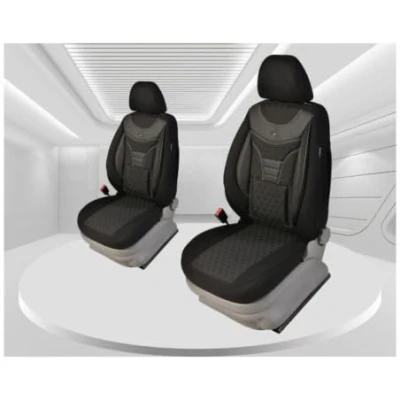 Features: made to measure for driver and passenger, also suitable for active headrests (not removable headrests), made in Germany Material: high-quality car fabric with 5 mm foam lining / faux leather appliqués Extras - 3 layer system, seat covers suitable for airbags and seat heating, back of the front seats equipped with generous pockets, comfortable and sporty seat Assembly: 1. Pull the cover on the seat. 2. Clip/hook attached under the seat. 3. Attach the backrest covers with Velcro fastener Box contents: 2 x seats, 1 x backrest for drivers, 1 x backrest for passenger, 2 x headrest covers, clamp/hook, assembly instructions (English language not guaranteed)
