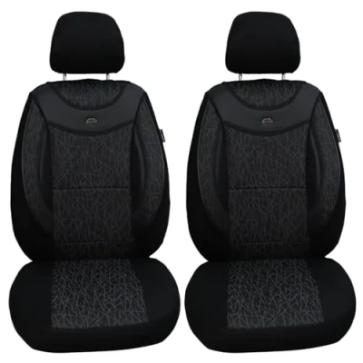 Features: made to measure for driver and passenger, also suitable for active headrests (not removable headrests), made in Germany Material: high-quality car fabric with 5 mm foam lining / faux leather appliqués Extras - 3 layer system, seat covers suitable for airbags and seat heating, back of the front seats equipped with generous pockets, comfortable and sporty seat Assembly: 1. Pull the cover on the seat. 2. Clip/hook attached under the seat. 3. Attach the backrest covers with Velcro fastener Box contents: 2 x seats, 1 x backrest for drivers, 1 x backrest for passenger, 2 x headrest covers, clamp/hook, assembly instructions (English language not guaranteed)