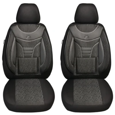 Features: made to measure for driver and passenger, also suitable for active headrests (not removable headrests), made in Germany Material: high-quality car fabric with 5 mm foam lining / faux leather appliqués Extras - 3 layer system, seat covers suitable for airbags and seat heating, back of the front seats equipped with generous pockets, comfortable and sporty seat Assembly: 1. Pull the cover on the seat. 2. Clip/hook attached under the seat. 3. Attach the backrest covers with Velcro fastener Box contents: 2 x seats, 1 x backrest for drivers, 1 x backrest for passenger, 2 x headrest covers, clamp/hook, assembly instructions (English language not guaranteed)
