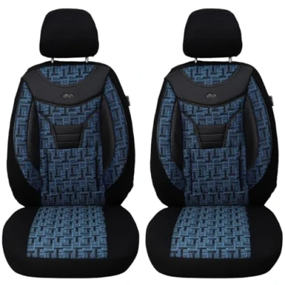 Features: made to measure for driver and passenger, also suitable for active headrests (not removable headrests), made in Germany Material: high-quality car fabric with 5 mm foam lining / faux leather appliqués Extras - 3 layer system, seat covers suitable for airbags and seat heating, back of the front seats equipped with generous pockets, comfortable and sporty seat Assembly: 1. Pull the cover on the seat. 2. Clip/hook attached under the seat. 3. Attach the backrest covers with Velcro fastener Box contents: 2 x seats, 1 x backrest for drivers, 1 x backrest for passenger, 2 x headrest covers, clamp/hook, assembly instructions (English language not guaranteed)