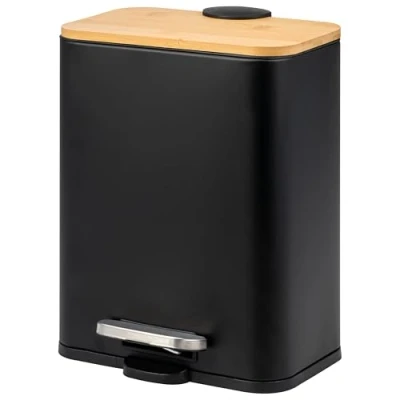 bremermann Cosmetic Bin, Pedal 5 Litre Capacity, Bin with Soft Close Bamboo Lid, Waste for Bathroom, Kitchen, Office Plastic Inner Bucket, Made of and Metal (Black)