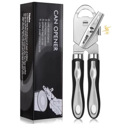 Brencco 3 in 1 Can Openers That Work, Heavy Duty Tin Opener for Arthritis Hands with Non Slip Handle, Comfortable Grip Work,Kitchen(Black)