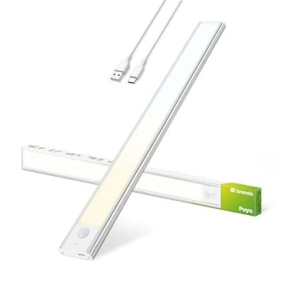 Versatile – Choose from 3 different color temperatures (cool 6000K, neutral 4000K, warm 3000K). You can dim the intensity between 10% and 100%. The memory function remembers the last setting. Illuminate any spot – Thanks to the PIR motion sensor, the under cabinet kitchen light activates for 25 seconds upon motion. With the switch, you can also easily adjust the light manually. Long lifespan – The under cabinet light charges in ~3.5 hours and provides 5.5 to 52 hours of light or up to 3000 sensor activations, depending on the light mode. The 3-layer diffuser ensures pleasant light at 190 lumens. Ideal for short lighting moments, not as a mains replacement. Quick installation – Thanks to 2 magnetic zones and included metal plates, you can attach the kitchen under cabinet lighting anywhere. Contents – Brendz Puyo silver under counter lights kitchen, size 10 x 405 x 41 mm, integrated 2200mAh lithium-poly battery, 25 cm USB-C cable, mounting material, and manual.