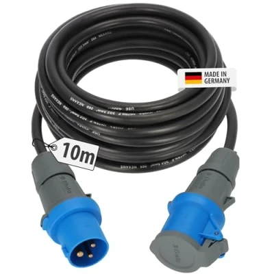 The extremely robust and high-quality CEE Extension Cable with a length of 10m and cable designation H07RN-F 3G2.5 is ideal as a camping cable for reliable outdoor power supply The Camping Extension Lead is equipped with a robust CEE plug 16A and a CEE coupling with protective cover, ensuring a safe connection Thanks to IP44 protection and the RN cable, the Extension Cable is perfectly suited for continuous outdoor use as a caravan extension or camping cable The durable Camping Extension Cable is made of extremely robust material and is perfect for all types of caravans and motorhomes The CEE Extension Lead with 230V, 10m length and black cable is the ideal solution for camping, outdoor activities and safe outdoor connections