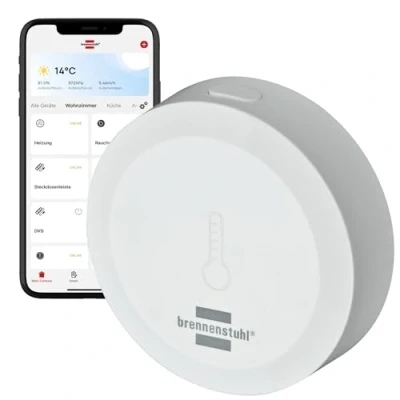 The temperature and humidity sensor detects temperatures from 0 to + 49 °C and the humidity from 0 - 95% - make your home even more comfortable thanks to the intelligent Brennenstuhl Connect devices The sensor can be used with Brennenstuhl Connect products such as the smart WiFi power strips can be paired to turn on the plugged air conditioner from a certain temperature - create individual scenes for a smart everyday life The temperature and humidity sensor can be easily attached to smooth surfaces using the included adhesive pad - for smart monitoring and control of the home For the setup and use of the Zigbee temperature and humidity sensor TFS CZ 01, the Brennenstuhl Connect Zigbee Gateway Art. No. 1294060 required.Note: During the installation or learning process, the 5GHz WiFi network should be turned off. After successful installation or learning process, the 5 GHz WLAN network can be activated again International products have separate terms, are sold from abroad and may differ from local products, including fit, age ratings, and language of product, labeling or instructions., Weight: 0.0440924524 Pounds, Manufacturer: Brennenstuhl