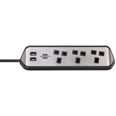General description This is a high-quality Brennenstuhl Estilo Corner Extension Lead designed for home and office use, combining functionality and style. Made from durable stainless steel, it is suitable for kitchen countertops, desks, or workspaces. The extension provides multiple outlets and USB charging ports for convenience. Technical specifications Cable Length: 2 meters Cable Type: H05VV-F 3G1.5 Number of Sockets: 3 earthed sockets arranged at 80° angles USB Ports: 2 USB charging ports Plug Type: UK standard (13A / 240V) Compatibility and accessories Compatible with standard UK electrical outlets Can be used with various household and office devices Includes adhesive pads for secure mounting without drilling or screws Installation Designed for easy attachment to countertops, tables, or desks using included adhesive pads No drilling or screws required for installation Usage Ideal for powering multiple devices simultaneously in kitchens, offices, or workspaces Includes USB ports