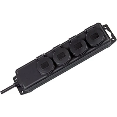 Brennenstuhl IP44 Socket with 4 Flap Sockets & 2m Neoprene Cable H07RN F 3G1.5 for Outdoor Use Black Quantity: 1