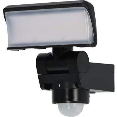 Bright LED Security Lights with motion sensor for outdoor use with a 180° detection angle - detects movement with a range of up to 10 m (light duration adjustable from 10 sec. to 4 min.) Outdoor Floodlight PIR with super-bright 1680 lm and pleasant, warm white light colour (3000 K) as a perfect light source for e.g. house entrances, courtyard entrances, garages, gardens, etc. Security Light with twilight sensor: Ensures that the spotlight comes on as soon as the brightness falls below a certain level (regardless of whether motion is detected or not) Durable outdoor security lights with horizontally and vertically swivelling spotlight head for optimum illumination and at the same time flexible positioning of the spotlight Easy wall mounting and quick connection possible thanks to enclosed fixing material (2x screws PWA4x35mm and 2x dowels φ6x27mm)