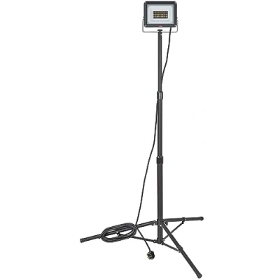 Height-adjustable (up to max. 1.8m) LED Spotlight with tripod ideal for use on construction sites, for DIY and craftsmen and many other applications outdoors and indoors Telescopic stand made of sturdy tubular steel and handy locking screws - for ideal mounting of the Work Light Energy-efficient LED Work Light with stand for ideal illumination - with super-bright Everlight SMD LEDs (no risk of injury due to low heat generation and high-quality safety glass pane) Continuously swivelling and lockable LED Site Light made of modern and robust aluminium housing Tripod LED Floodlight JARO with 5m cable and practical cable holder on the telescopic tripod made of sturdy tubular steel, Manufacturer: Brennenstuhl