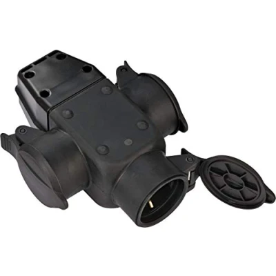 The robust rubber coupling for high mechanical stress on construction sites, in commercial or for private use Easy handling of the distributor socket thanks to the practical integrated hanging device 3-way distribution socket with self-closing hinged lid also offers a connection of max. Cross section of 2.5 mm² The professional rubber adapter is made of high quality and durable rubber housing Robust 3-way distribution socket with practical hanging device, Weight: 0.661386786 pounds, Manufacturer: Brennenstuhl