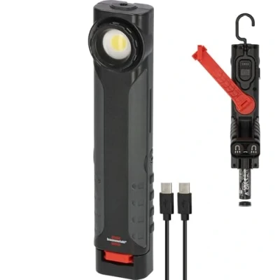 Brennenstuhl Rechargeable LED Torch HL 600 AD/Dynamo Work Light with USB C Cable (600+180lm, IP54, IK08, Inspection Lamp up to 15h Duration, Integrated Hook and Magnets)
