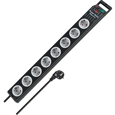Brennenstuhl Super Solid 8 Way Power Strip (2.5 m Cable and Switch Made of Shatterproof Polycarbonate) Black/Grey