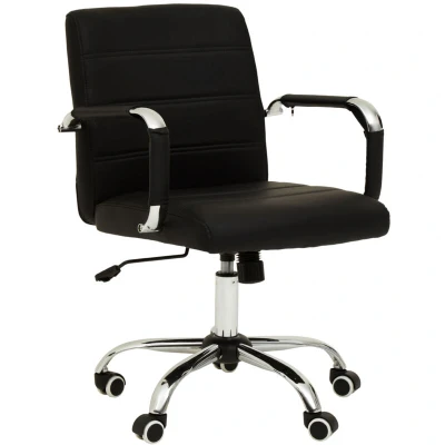 Brent Black Leather Effect And Chrome Home Office Chair Premier Housewares