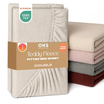 Double Fitted Sheets 2 Pack: The crisp white fluffy bedding double fitted sheet made from soft teddy fleece fabric, ensuring a smooth and comfortable feel throughout the summer and winter months. 137cm x 190cm: Double fitted sheets 2 pack with elasticated edges that measure 25cm when applied to mattress. Easy application teddy bear fitted sheet makes taking off and putting super easy. Teddy fitted sheet are machine washable at 40°C. Ultra soft luxurious double bed fitted sheets 2 pack guarantees a relaxing and restful sleep, night after night. Double bed sheets doesn't stick or feel too clammy against skin, with fine fluffy fabric perfect for those with sensitive skin. Fade and wrinkle resistant double sheet fitted that are highly durable and last longer than regular bed double sheet. Easy care deep fitted sheets double bed made from breathable 100% polyester with 150gsm teddy fleece material. Perfect bedsheets double set present for Birthdays, Mother’s Day, Father’s Day or Christmas. Luxury double fitted sheet gift for new homeowners or friends and family restyling their bedroom decor. Includes 2 x Double teddy bear fitted sheet