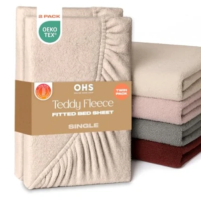 Single Bed Sheets: The stylish latte taupe shade teddy bear bedding single fitted sheet made from soft teddy fleece fabric, ensuring a smooth and comfortable feel throughout the summer and winter months. 91cm x 190cm: Single fitted sheets 2 pack with elasticated edges that measure 25cm when applied to mattress. Easy application teddy bear fitted sheet makes taking off and putting super easy. Teddy fitted sheet are machine washable at 40°C. Ultra soft luxurious single sheets 2 pack guarantees a relaxing and restful sleep, night after night. Single bed sheets fitted doesn't stick or feel too clammy against skin, with fine fluffy fabric perfect for those with sensitive skin. Fade and wrinkle resistant single fitted sheet that are highly durable and last longer than regular bed single sheet. Easy care single bed sheets made from breathable 100% polyester with 150gsm teddy fleece material. Luxury single bedsheets set gift for new homeowners or friends and family restyling their bedroom decor. Perfect fitted single sheet present for Birthdays, Mother’s Day, Father’s Day or Christmas. Includes 2 x Single teddy bear fitted sheet