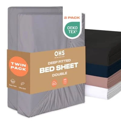 Double Bed Fitted Sheets 2 Pack: Grey fitted hosptial bed sheets double crafted from microfibre material, delivering a comfortable, smooth and soft feel against your skin. Bedsheets keep you cool in summer and warm in winter. Soft and luxurious fine velvety bed sheets double is perfect for those with sensitive skin, as it does not stick or feel too clammy. Deep fitted sheets double guarantee a blissfully relaxing sleep, night after night. 137cm x 190cm: Double bed fitted sheet pack of 2 with elasticated edges that measure 30cm when applied to mattress. Easy application double sheet makes taking off and putting super easy. Wrinkle and fade resistant bed linen sheets double which are durable and last longer than regular fitted sheets. Machine washable bed sheets at 40°C and tumble dry and iron on low heat. Sheets double made from soft breathable 100% polyester material. Perfect bed sheets double set present for Birthdays, Mothers Day, Fathers Day or Christmas. Luxury fitted sheet gift for new homeowners or friends and family restyling their bedroom decor. Includes 2 x Double Bedsheets.