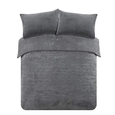 Brentfords Grey Teddy Fleece Single Duvet Set, Bed Cover Set with Pillowcases Thermal Bedding Ultra Soft Warm Fluffy