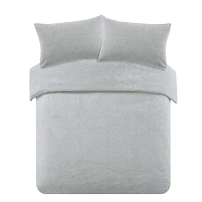 Brentfords Silver Grey Superking Duvet Sets, Teddy Fleece Set Super King Size with Pillowcases Christmas Bedding Ultra Soft Warm Comfy Cosy Quilt Covers