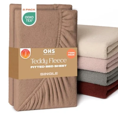 Single Bed Sheets: Neutral mink fluffy bedding single fitted sheet made from soft teddy fleece fabric, ensuring a smooth and comfortable feel throughout the summer and winter months. 91cm x 190cm: Single fitted sheets 2 pack with elasticated edges that measure 25cm when applied to mattress. Easy application teddy bear fitted sheet makes taking off and putting super easy. Teddy fitted sheet are machine washable at 40°C. Ultra soft luxurious single sheets 2 pack guarantees a relaxing and restful sleep, night after night. Single bed sheets fitted doesn't stick or feel too clammy against skin, with fine fluffy fabric perfect for those with sensitive skin. Fade and wrinkle resistant single fitted sheet that are highly durable and last longer than regular bed single sheet. Easy care single bed sheets made from breathable 100% polyester with 150gsm teddy fleece material. Luxury single bedsheets set gift for new homeowners or friends and family restyling their bedroom decor. Perfect fitted single sheet present for Birthdays, Mother’s Day, Father’s Day or Christmas. Includes 2 x Single teddy bear fitted sheet