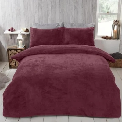Brentfords Teddy Fleece Super King Bedding Duvet Set Red, Winter Covers with Pillowcases Cover Thermal Quilt Covers, Burgundy