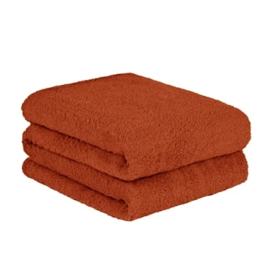 Brentfords Teddy Fleece Throw, Burnt Orange Throws for Sofas Blanket Winter Double Bed King Ultra Soft Thick Comfy Blankets Couch Covers, 200x250cm