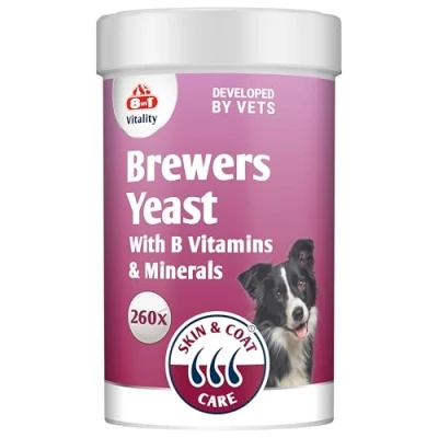 Developed with veterinarians, brewers yeast dietary supplement, with additional vitamins and minerals supports healthy skin and a shiny coat Rich in B-complex vitamins including B1, B2 and B6 as well as biotin to help maintain healthy skin Contains additional minerals to support nutritional balance: iron, zinc, manganese, calcium, copper With fish oil for essential Omega-3 fatty acids