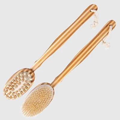 AmazonBamboo Massage back brush with wood and bamboo structure. On the one hand exfoliating bristles and on the other hand massage rubber teeth. Number of items: 1.0 Package Weight: 1.0 kilograms Package Dimensions: 30.0 L x 30.0 H x 30.0 W (centimeters)