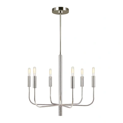 Brianna chandelier in a simple design The 6-bulb Brianna chandelier made of steel has a simple design. It hangs from a rigid suspension system and is fitted with six arms with E14 sockets arranged in a row. Transparent bulbs with candle-shaped or tubular LED filaments look particularly beautiful in the sockets. Bulbs can be ordered directly.