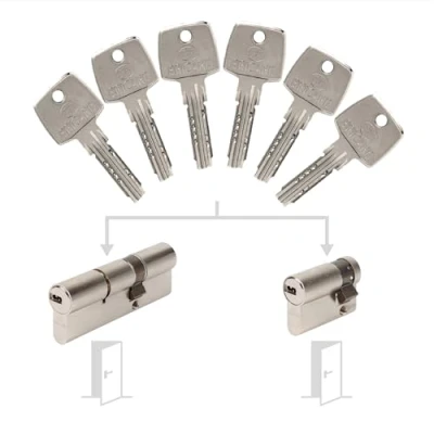 Supplied with 6 identical reversible keys and personal card. Astrals cylinders 10 pin disengageable nickel-plated brass. Made in France Protection against drilling, picking, pulling and pushing., Manufacturer: Bricard