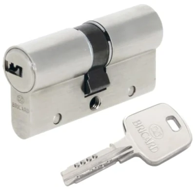 Nickel-plated bricard Serial XP cylinder lock 30 + 30, double entry, security level 4 4 interchangeable keys protected from reproduction TORSION resistance to breakage and Resistance against picking Resistant to bumping, Manufacturer: BRICARD