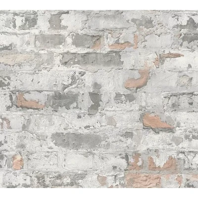A realistic distressed plaster over old weathered brickwork. vailable in a range of colours, shown in the grey with pink detail. This design has a 64cm pattern repeat with a half drop match.
