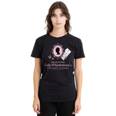 Bridgerton Women's Get My Tea Whistledown Ladies T Shirt, Black, L