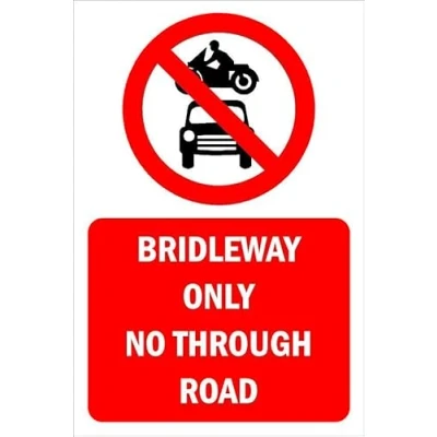 Bridleway only, no through road, prohibition sign Self adhesive sticker (300mm x 200mm)