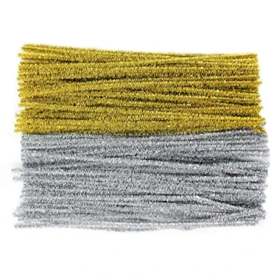 Bright Ideas Pipe Cleaners Glitter Gold and Silver Tinsel PK100 Long Assorted 30cm x 6mm, Colour Cleaners, Arts & Craft, for Crafting. BI0009.