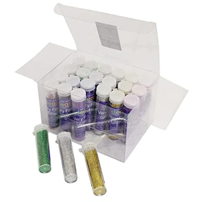Bright Ideas Pack of 24 assorted 7g Fine Glitter tubes Fine glitter tubes in an assorted pack of 24 metallic colours include Gold, Silver, Red, Green, Blue, Black, Pink and Purple Easy-to-use plastic shaker jar for easy application Add an extra touch of sparkle to any occasion or add an extra wow factor to any party, festive occasion or present. Perfect for use on school projects, glue these stunning glitter onto your craft projects or accessories