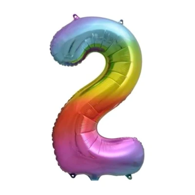 Bright Rainbow Number 2 Large Helium Foil Balloon Birthday Party Wedding Anniversary Decoration 101cm (2 Pack)