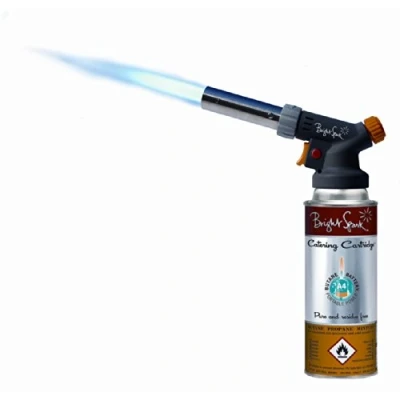 One touch piezo ignition and then use at any angle from start-up Focusable 1.45kW maximum heat makes deal for browning, sealing and caramelising Best to use Bright Spark A4 Butane Battery (Catering BS3656) not included. Cartridge can be safely removed even if not empty. Convenient, economic and easy to use, gas cartridge simply and safely clicks to Blowtorch 5 Year Guarantee