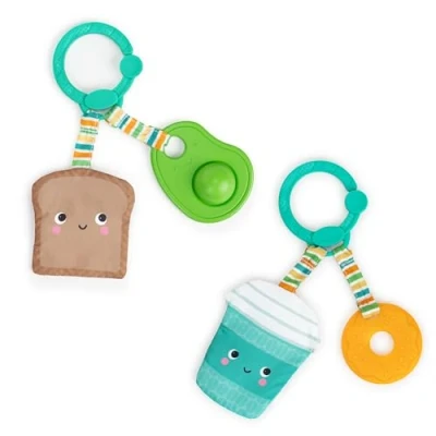 Bright Starts, Baby Teether Ring, Perfect Pair 2 in 1 Toy Coffee, Donut, Avocado & Toast, BPA Free, Assorted, 3 Months and Up