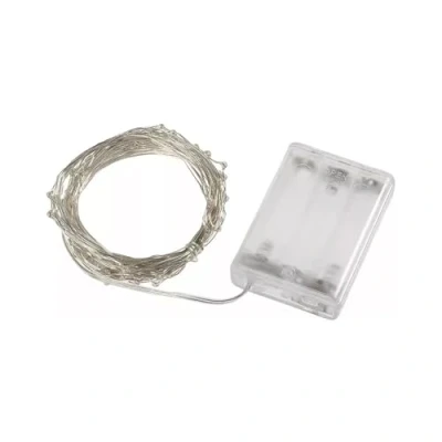 Brighten up your spaces with a 10m copper wire LED fairy lights. [Magic Decoration] and [Easy to Use] (3AA). [10 Meters] LED String Lights in [Warm White] Powered by [3AA Battery] (Ideal for Decoration). [Energy Efficient], [Easy Installation]. LED Copper Wire String Lights, 10 Meters, [Warm White] [Easy Installation] (3AA). Perfect for [decoration] and [setting]. [LED Lights] [Copper] Wire String (10 Meters) with [Warm White] [3AA Battery Powered] for added [convenience]. 5. Recommended applications or uses: - Ideal for [festive decorations] or [atmosphere setting] (e.g. weddings). - Perfect for [indoor] and [outdoor] thanks to its design.