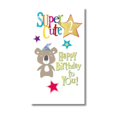 Brightside Age 2 Birthday Card, 2nd Card Super Cute, 228 x 124mm, Multi Coloured