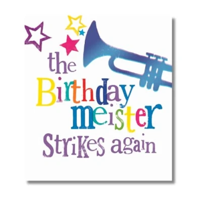 Brightside General Birthday Greetings Card, The Birthdaymeister Strikes Again Card for a Friend, 180 x 160mm, Multi Coloured