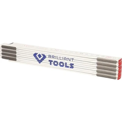 External visible joints with spring fittings Riveted joints With mm graduations on both sides on top and bottom edges With large decimal numbers Total length: 2 metres, Manufacturer: BRILLIANT TOOLS