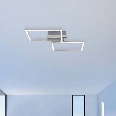 Lights.coLED ceiling light with two square lampshades - incl. remote control The LED ceiling light has a modern design. Consisting of two square frames, it can be effortlessly integrated into modern interior styles. The two squares sit on the canopy, which consists of a chrome-colored metal support. With the help of a remote control or a wall switch, the lamp is adjustable in two light colors - warm white and universal white. Likewise, it has a night light function that creates the perfect light for darker hours. A memory function preserves previously set modes.